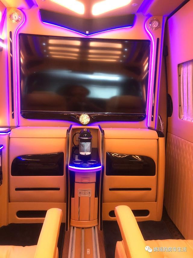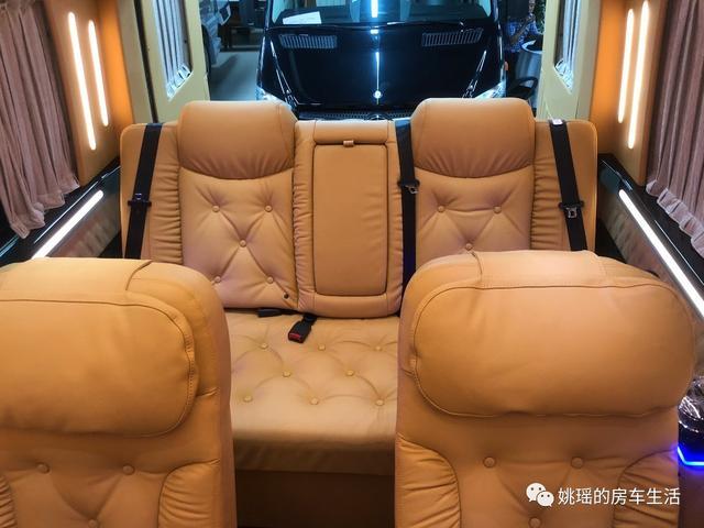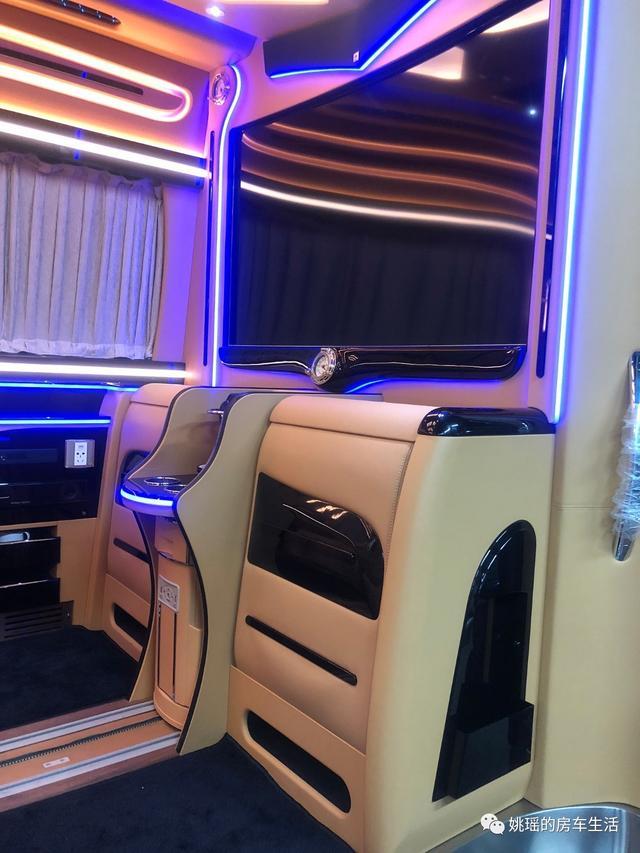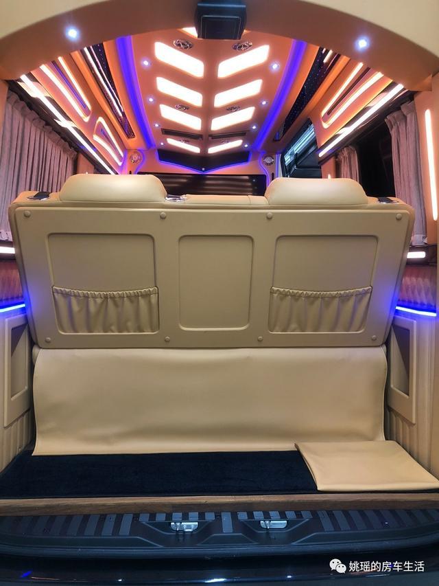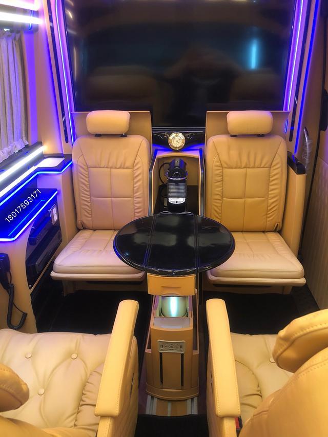 奔馳斯賓特皇宮版車長5.9米,寬2米,高2.8米,搭載5速自動擋變速箱,藍牌C照即可駕駛。整車內飾顏色以淺黃色為主,搭配藍色燈帶和暖黃色燈光裝飾,給人一種富麗堂皇的感覺。