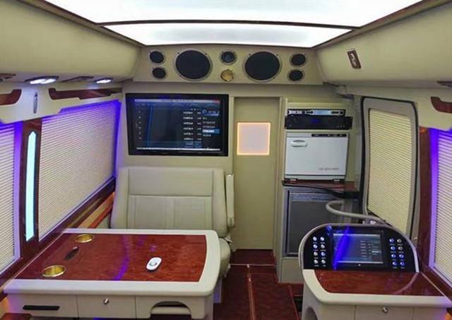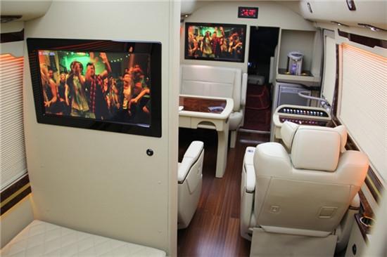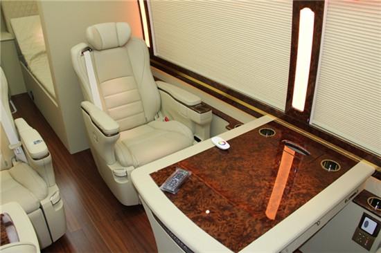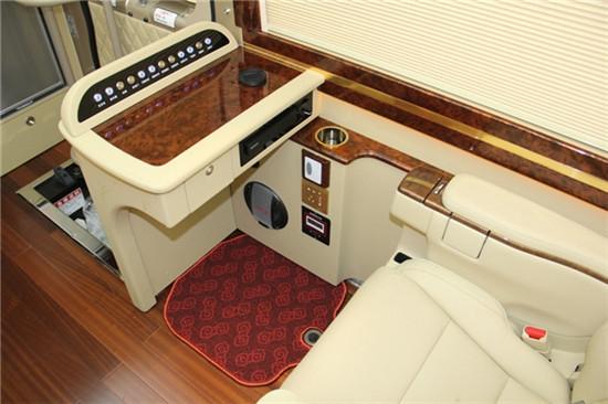 窗簾內側可以加裝LED各種顏色的燈光,臺階上可以鑲嵌LED燈光,顯示品牌坐標LOGO等。這樣的燈光直觀的視野效果可以襯托出舒適與品位,這樣的空間也很好的給改裝提供了便利的條件,也正是品位的象征,和領導們追求的舒適性能。